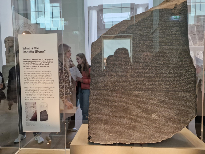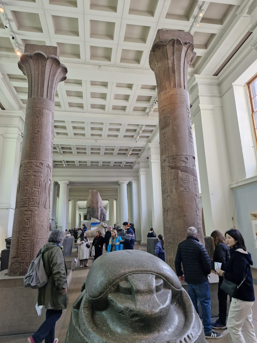 Tel un iule qui ondule entre les sarcophages, les estampes de maîtres du 19ᵉ siècle, et les personnes qui s’amassent devant les vitrines, la file des insulaires s’extirpe du British Museum.