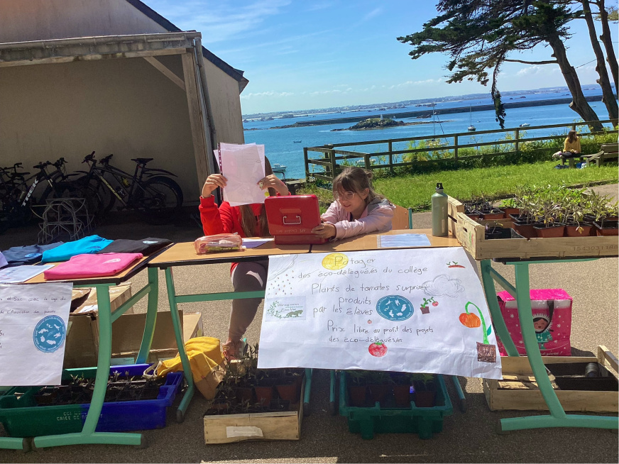 Le vendredi 23 /05/2025, ont eu lieu les portes ouvertes du potager du collège de l’île de Batz. Nous avons vendu des plants de tomates et de la coriandre. Puis on a présenté le potager aux acheteurs (16). Les visiteurs ont été accompagnés par des parents d’élèves, des professeurs et les élèves volontaires.