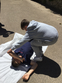 « Nous avons eu la chance de pouvoir passer le PSC1 qui consiste à apprendre les gestes des premiers secours. Nous avons aimé apprendre comment arrêter une hémorragie et les mises en situation : surtout , lorsque Samuel a dégagé Yanis d’un incendie (fictif). »