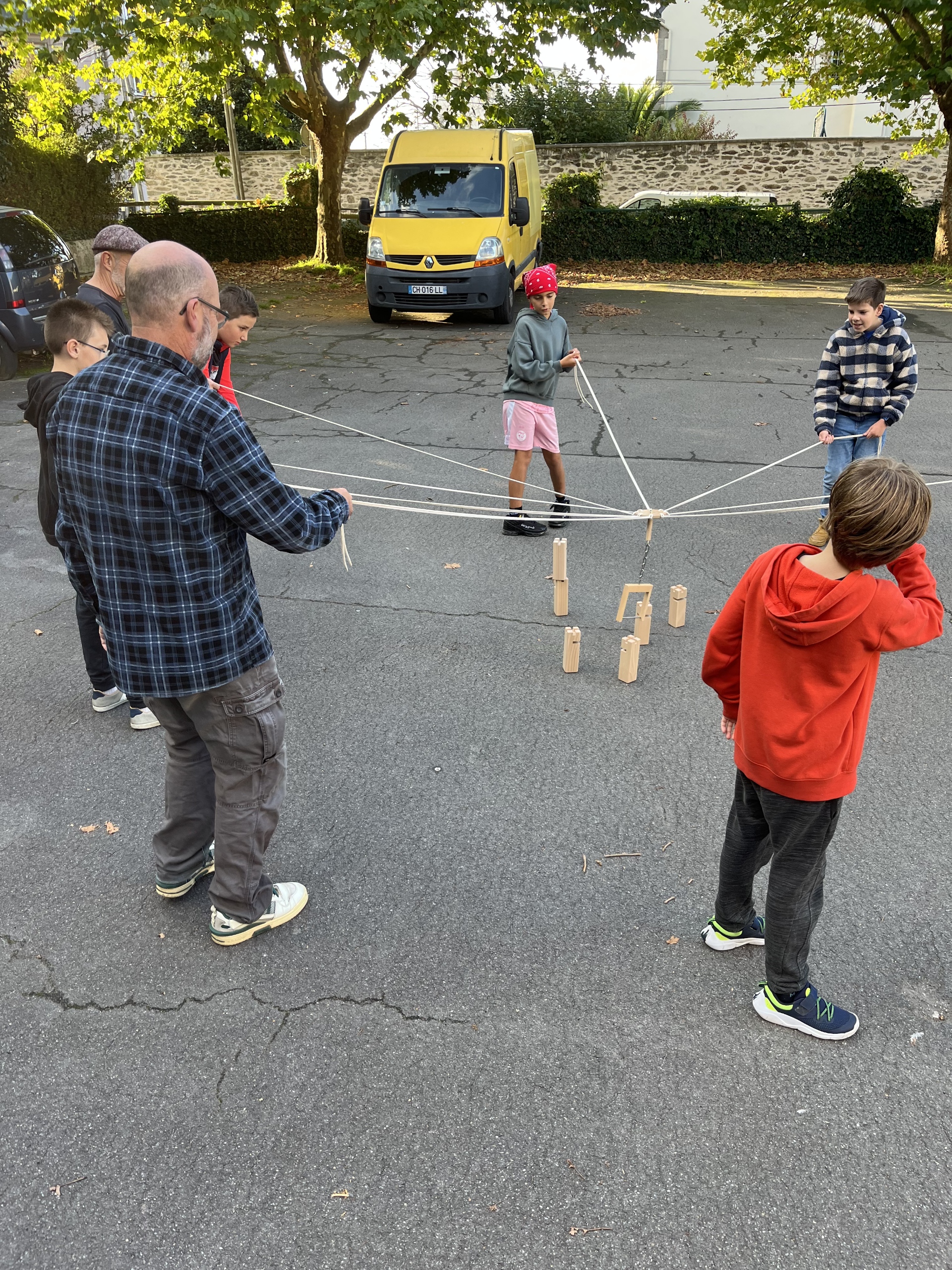 Tram et courte marche…en descente. On y pense forcément ; il faudra remonter. Du bois, des ficelles, des boules, des palets, de la stratégie, de la déduction, de l’adresse ; défis et rires. Des escaliers s’enchainent, le château se mérite. Tous semblent usés comme des bagnards en fin de journée. Bonnet rouge ou vert. On croit entendre dans les méandres des couloirs, le clavecin de Loussier. Les nouvelles aventures de Vidocq. Temps libre aux Capucins ? Alors téléférique pour y aller. Je tremble. Et pourtant compétence validée…
